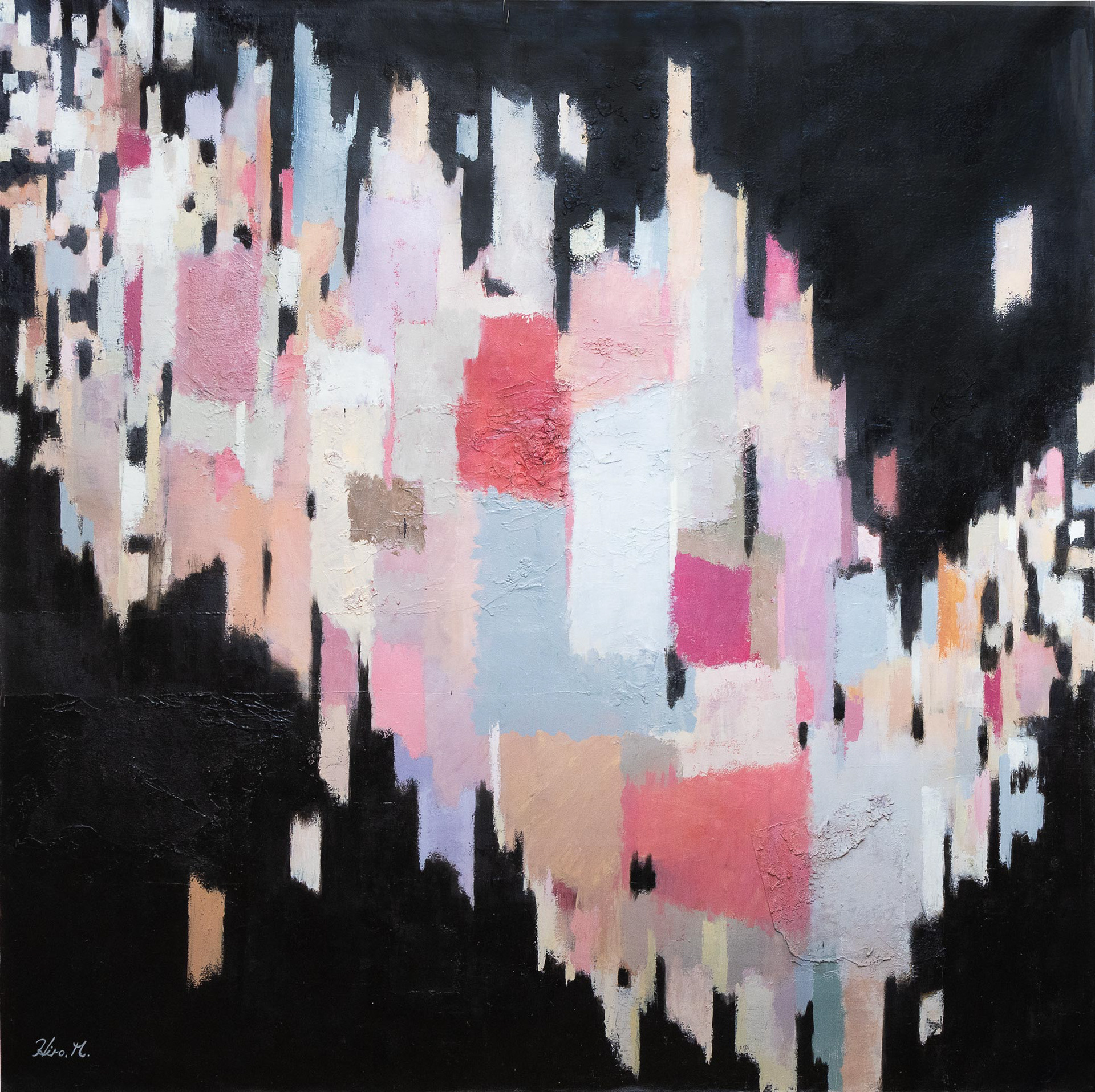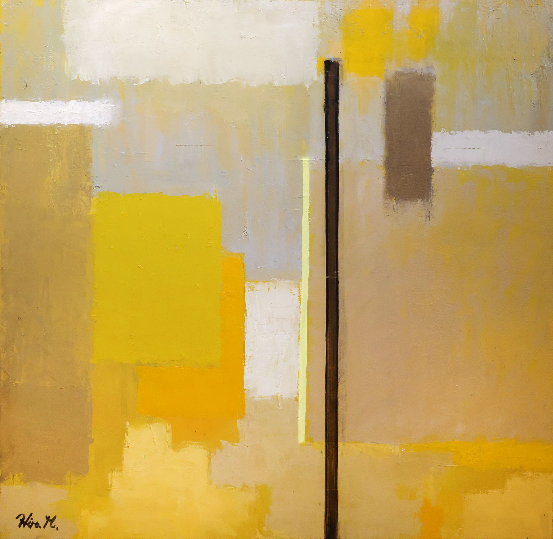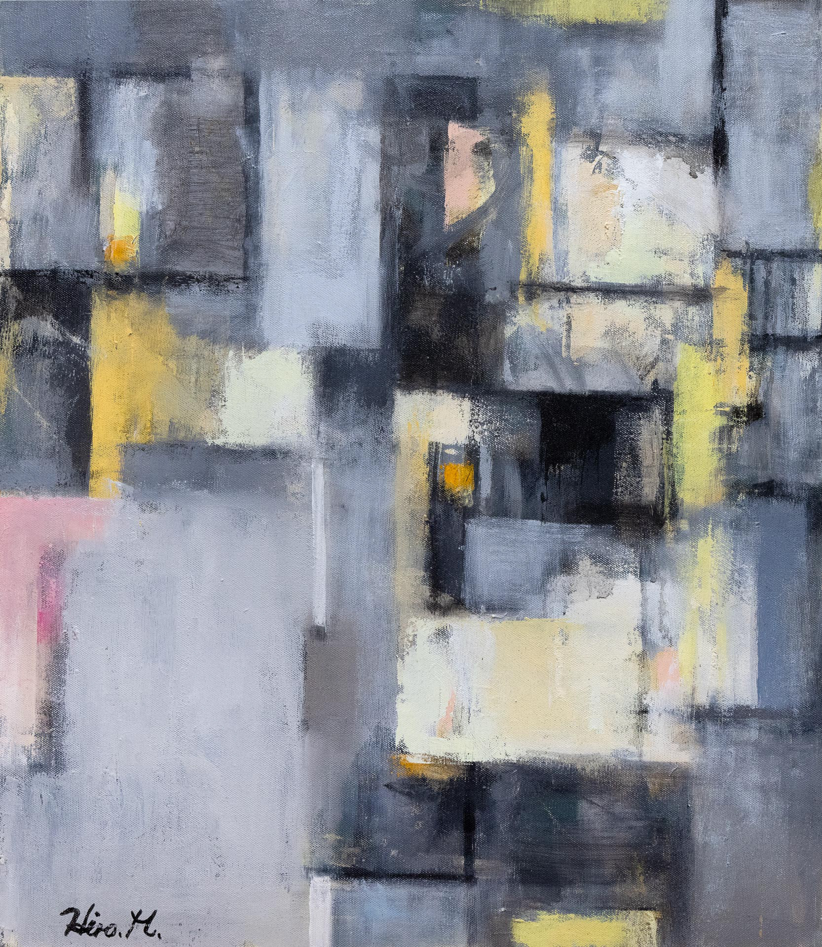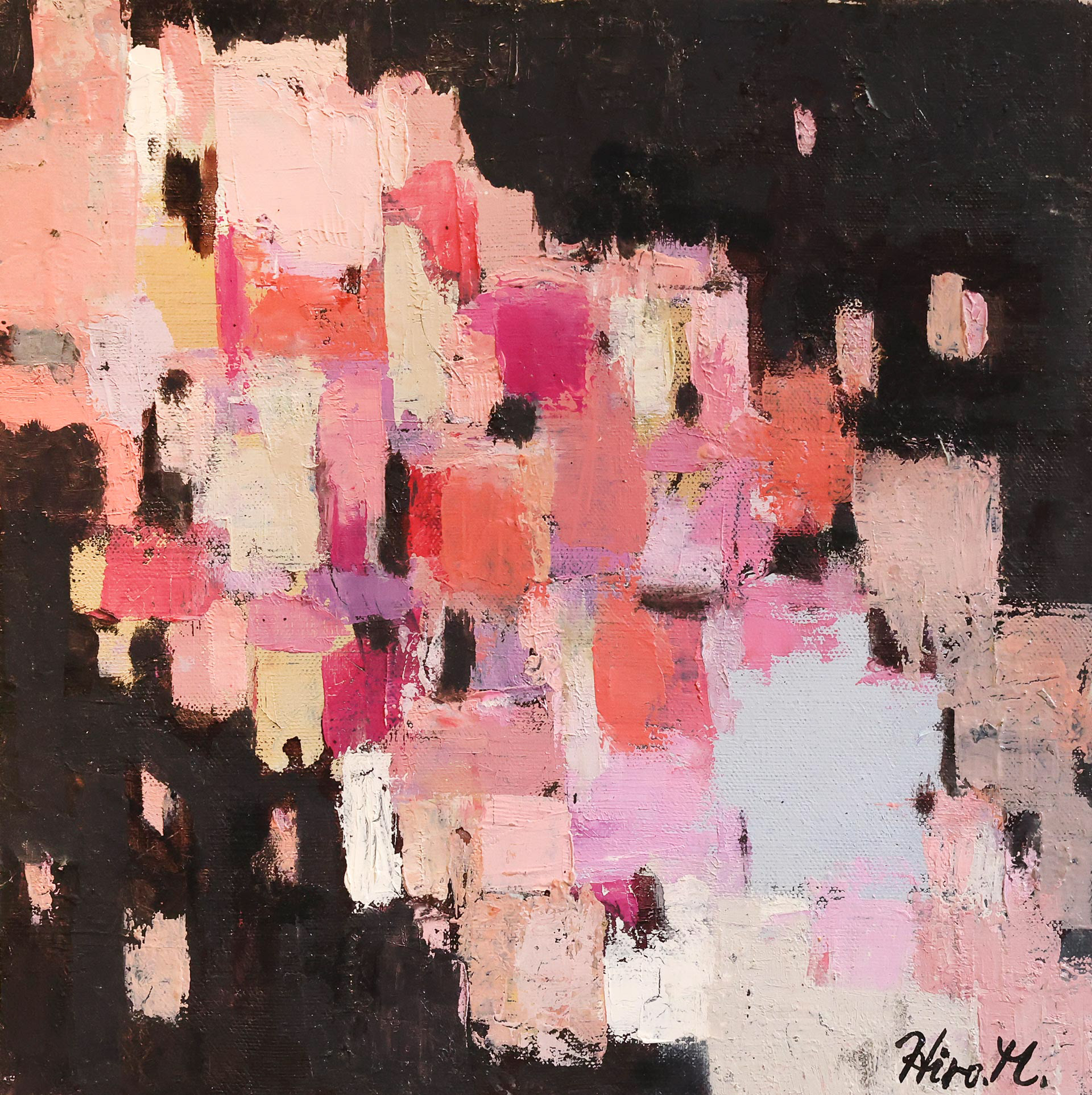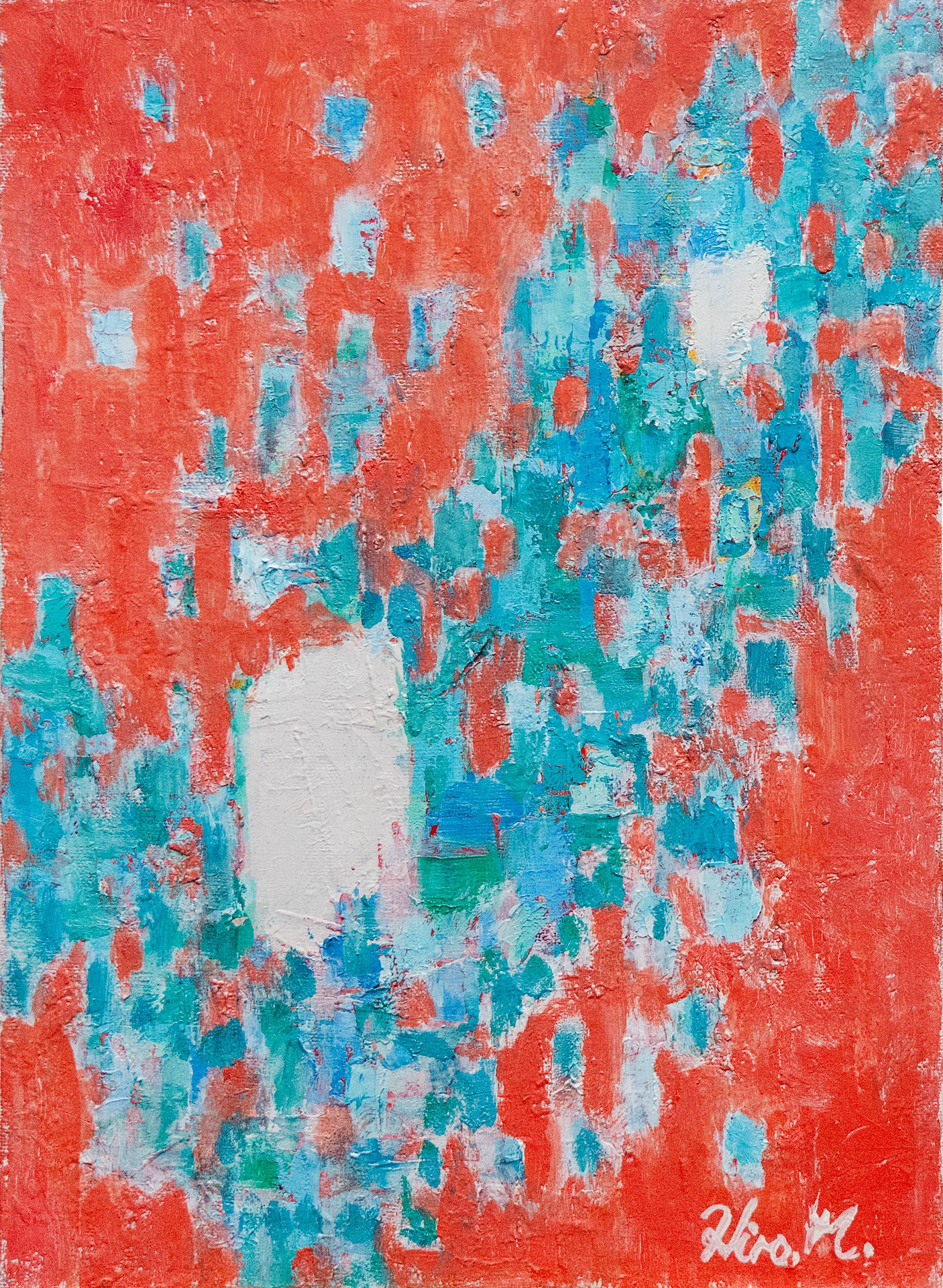 即ち、「図」としてのフォルム(形態)の変化・大きさ・色彩等が、「地」のトーンや色彩・距離感等にどのような影響をもたらすのか、またその逆に「地」の変化が「図」へどう影響するのか、そして結果として「地と図」の総体が何を表してくるのか、といったフォルムが色彩に代表される「地と図」の無限の変化に対する興味が私の創作への原動力ではないかと思う。